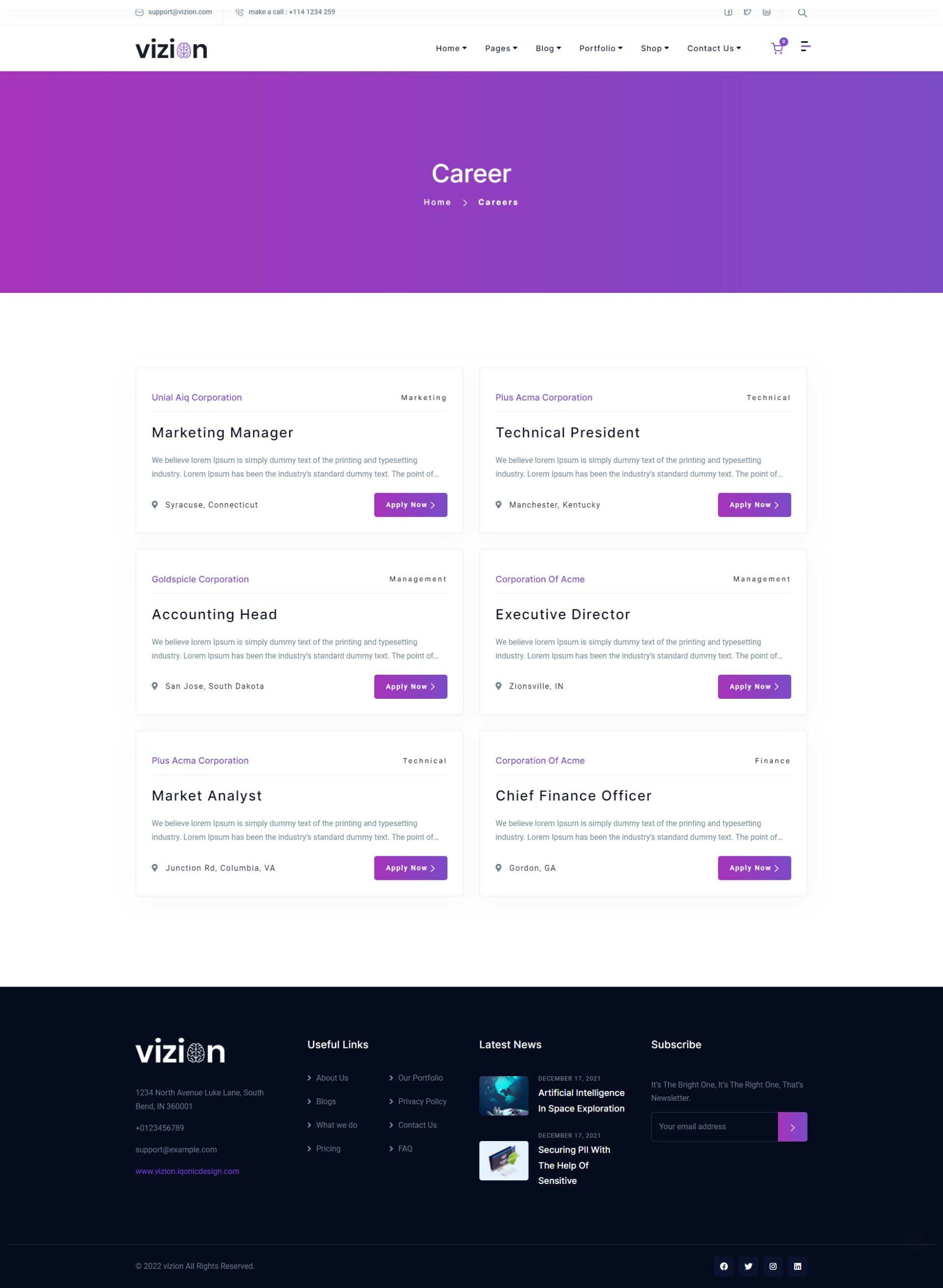 Vizion is fully responsive. Whether you are browsing from mobile, tablet, desktop or laptop, Vizion will be fit all screen sizes. Vizion is also Retina Ready which shows content rich in Apple devices.